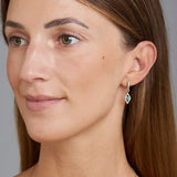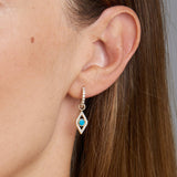 ¡Dos pendientes en uno! Elegantes, glamurosos y chics, así son nuestros aretes con diamantes en oro de 14 quilates. De los aretes cuelga un ojo de turquesa engastado en pavé de diamantes.