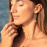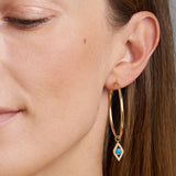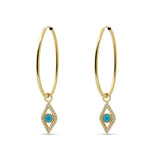 ¡Dos pendientes en uno! Elegantes, glamurosos y chics, así son nuestros aros en oro de 14 quilates. De los aros cuelga un ojo de turquesa engastado en pavé de diamantes