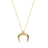 El colgante Luna en oro de 14 quilates presenta un pavé de diamantes y da un toque de brillo a tu escote. Combínalo con los pendientes o el anillo de la colección diamantes.