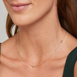 Este collar hecho a mano en oro de 14 quilates es nuestro top ventas. La sutil cadena de oro presenta 11 zirconias en bisel. Póntelo durante el día y déjalo puesto para tu velada. ¡Te prometemos que no querrás quitártelo una vez puesto!