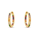 Estos aros de zirconita en oro vermeil de 18 quilates atrapan miradas y te harán brillar intensamente. Los pendientes tienen piedras de zirconita de colores en la parte delantera y trasera del aro, por lo que no importa en qué dirección gire, no se te puede perder la chispa. Nuestro chapado de oro es el más grueso del mercado, por lo cual es muy duradero, resistente e hipoalergénico.