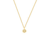Nuestro colgante en oro de 14 quilates para las más pequeñas presenta una flor con esmalte azul y blanco pintado a mano.